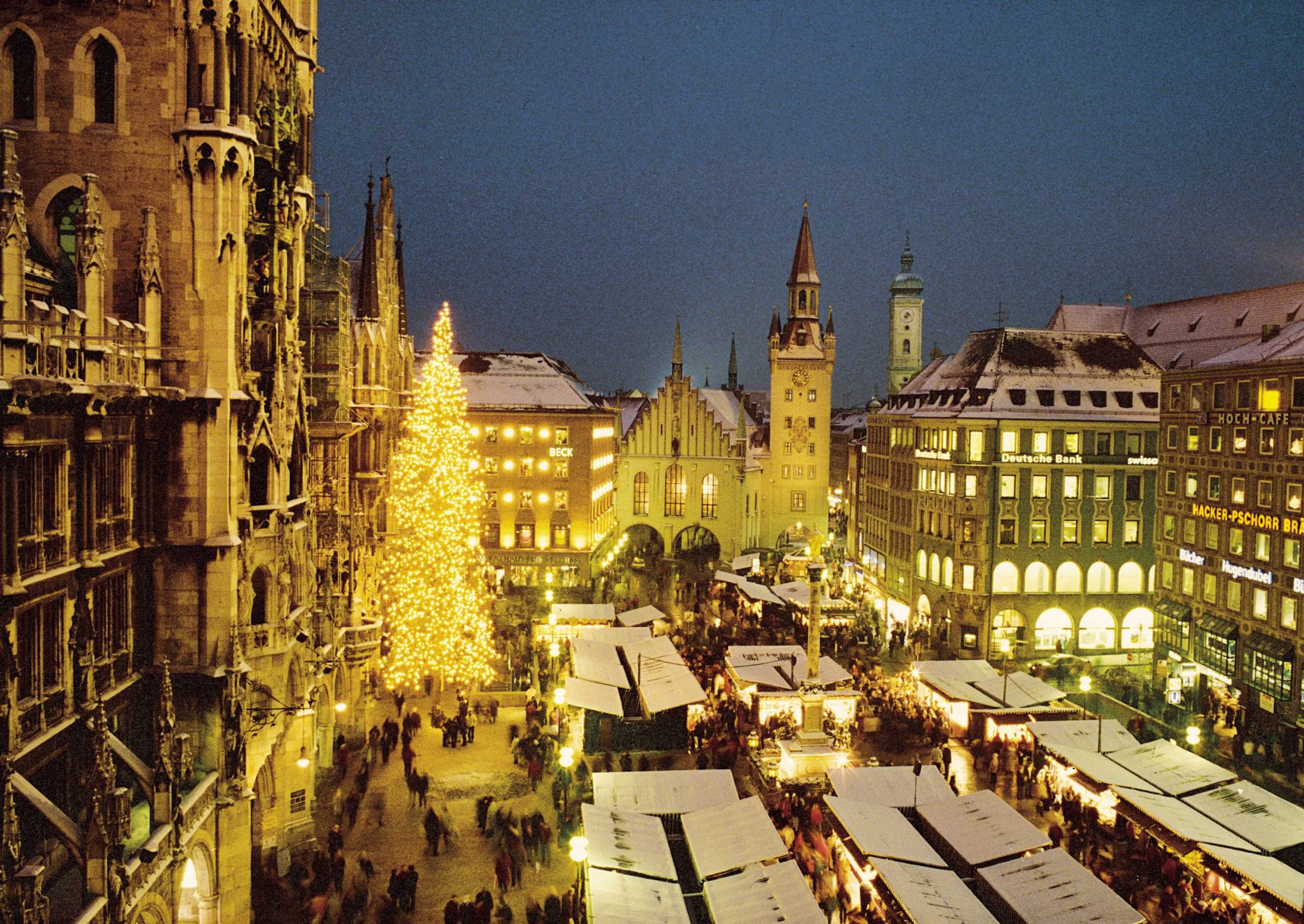 その起源は14世紀にまで遡ると言われるミュンヘンのクリスマスマーケット。大きな仕掛け時計のある新市庁舎が目印のマリエン広場で開かれます。クリスマスのオーナメントやろうそくが充実しているほか、イエス・キリスト誕生のシーンを表現した手工芸品「クリッペ」の品ぞろえも豊富です。新市庁舎前にそびえる高さ26メートルものきらびやかなクリスマスツリーも見どころ。マリエン広場近くのヴィッテルスバッハ家の宮殿「レジデンツ」の中庭でもクリスマスマーケットが開かれます。