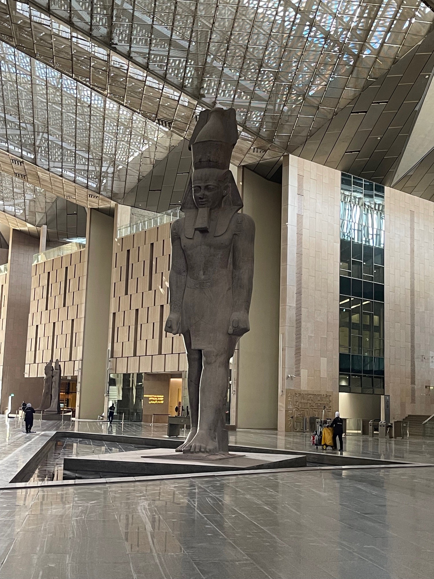 大エジプト博物館は、カイロ近郊のギザにある3大ピラミッド近くに国家的プロジェクトとして建設され、25年11月にグランドオープンしました。カイロ市内のエジプト考古学博物館が老朽化したため、その後継施設として02年から構想が進められ、日本の財政面、技術面の支援を受けて完成しました。約50万平方メートルの広大な敷地に、約10万点の文化財が展示される世界最大級の博物館です。展示・収蔵施設、修復センター、図書館などが併設され、エジプト観光の新たな目玉としてだけでなく、研究・教育面でも大きな期待が寄せられています。