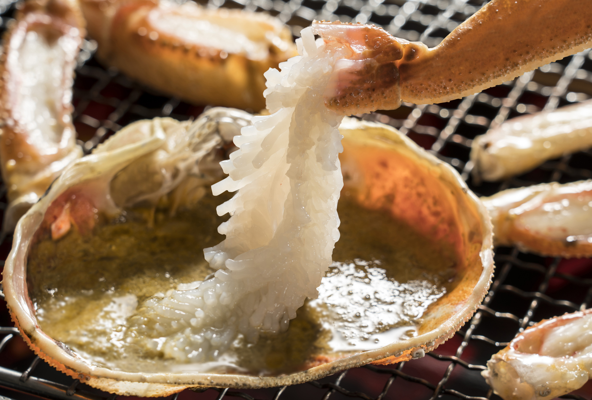 ズワイガニを例にとると、まずは身体が大きく、ずっしりと重いもの。筋肉が発達し、うま味が凝縮されています。次に、甲羅が硬いもの。大きくなるために何度も脱皮を繰り返している証拠です。そして、その甲羅に傷が多ければ、脱皮から時間が経ち、荒波にもまれて引き締まった身がぎっしり詰まっているそうです。甲羅に黒いツブツブ(カニビル)が多く付いているものもおいしいとされています。
