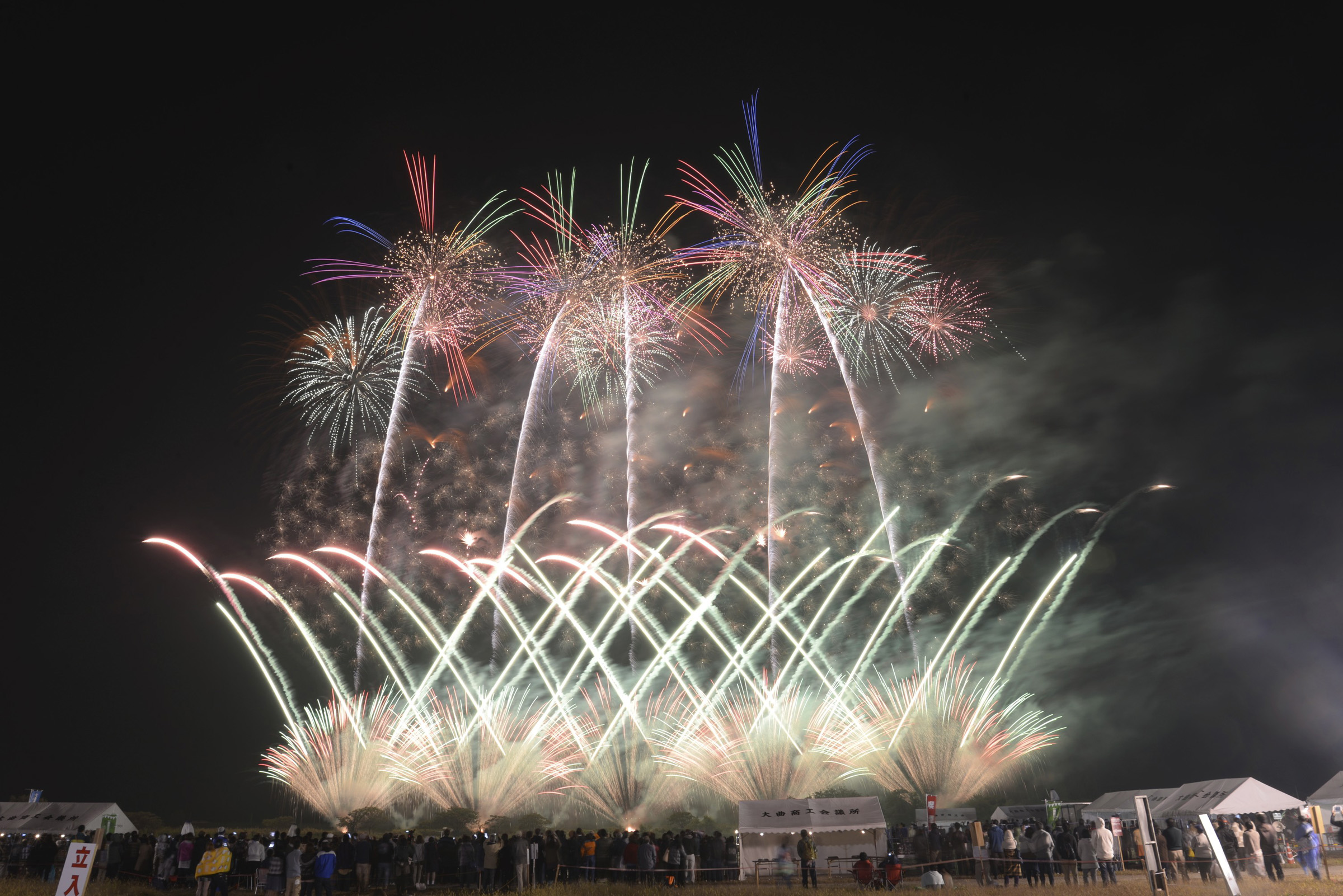 毎年夏に行われる大会の正式名称は「全国花火競技大会」といい、日本一の花火師が決まると言っても過言でない、権威のある大会です。「昼花火」と「夜花火」で構成され、昼花火では赤や青、緑など色のついた煙による模様の美しさを競う珍しい競技も。夜花火は色彩だけでなく大きさや高度、音など様々な視点から審査され、最優秀には内閣総理大臣賞が授与され、日本一と認められます。