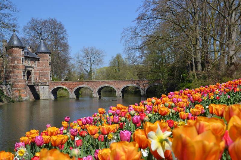 羽田空港発着 花いっぱいのキューケンホフ公園、グラン・ビガール城&天井のない美術館”ブルージュ”散策
